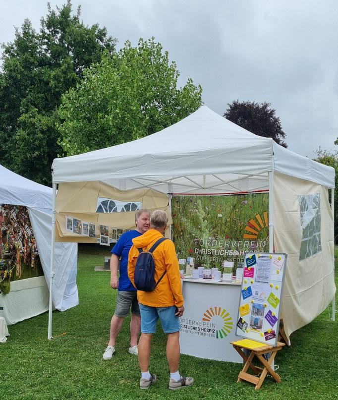 Der Hospizförderverein war auch dieses Jahr wieder mit einem Informationsstand vertreten. Wir haben interessante Gespräche mit Besuchern des Festes geführt und konnten Informationen über das stationäre Hospiz auf dem Dönberg und die Arbeit des Fördervereins geben. In der Spendenbox kamen an diesem Wochenende 161 Euro zusammen.